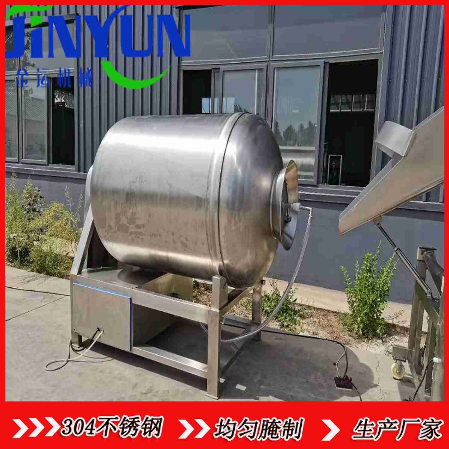7、圆形封头,结构合理,滚揉空间大,运行平稳、噪音小、性能可靠、操作简便、设备使用效率高